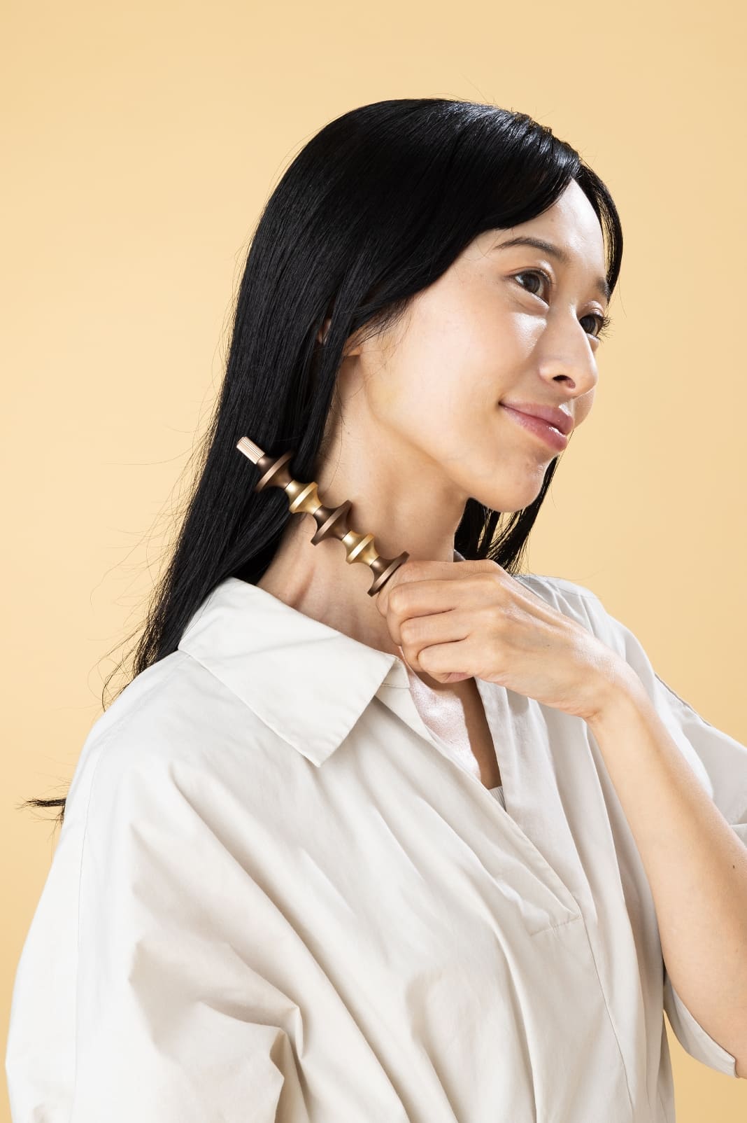 工業製品の質感と、美容アイテムの優しさを融合させたメタリック表面処理