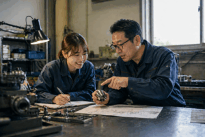 次に。私たちの強みは、設計と製造が同じ屋根の下にあることです。 実際に。平均年齢32歳の若い設計者が、現場の職人と密に連携しながら図面を磨き上げます。 そこに。航空宇宙部品で培った精密技術と、自社ブランドを成功させた知見を掛け合わせます。